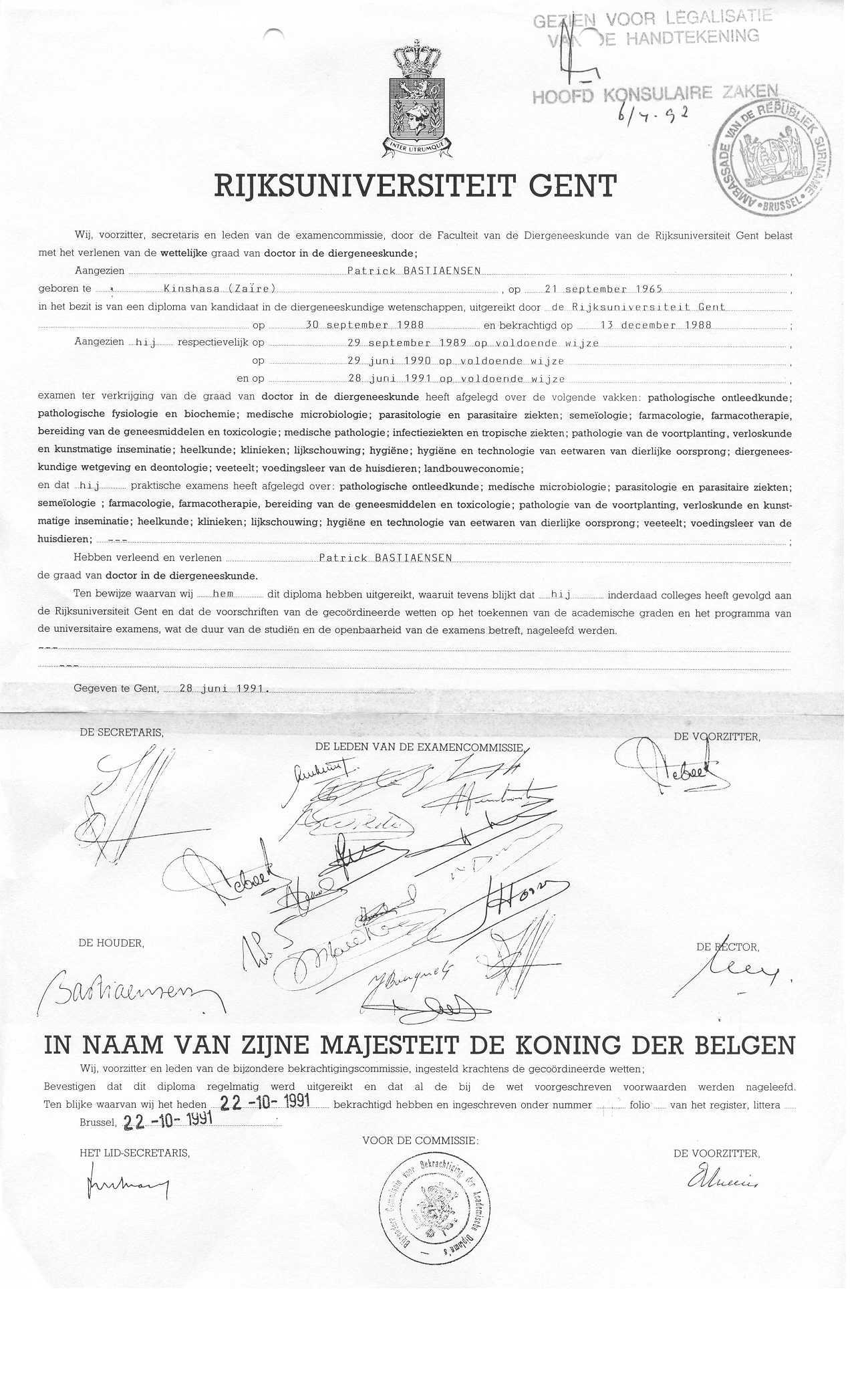 Faculty of Veterinary Sciences (Faculteit Diergeneeskunde), State University of Ghent (R.U.G.).